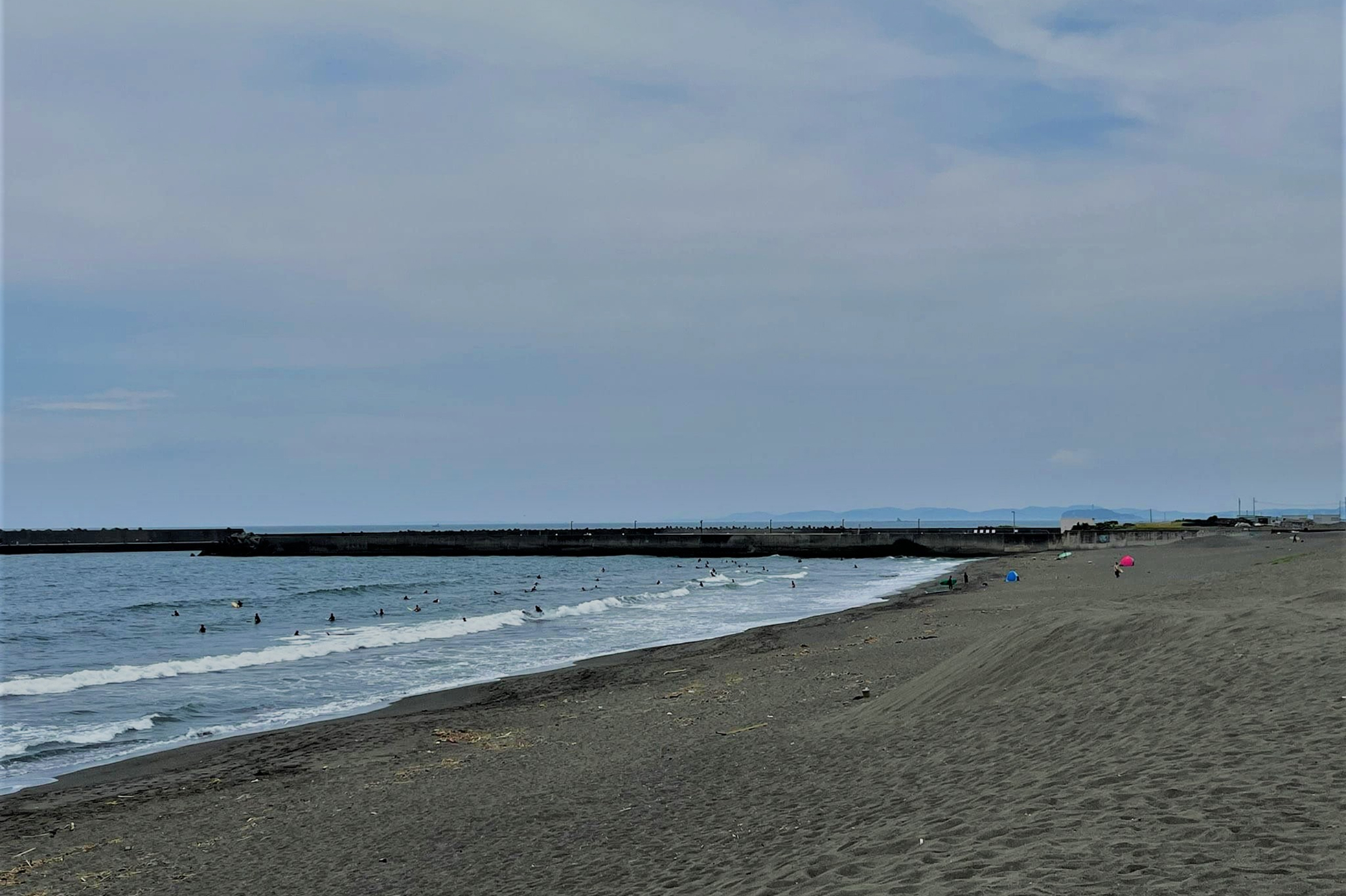 買ったカルメ焼きを食べながら歩いてみると、すぐ近くにはもう海があります。