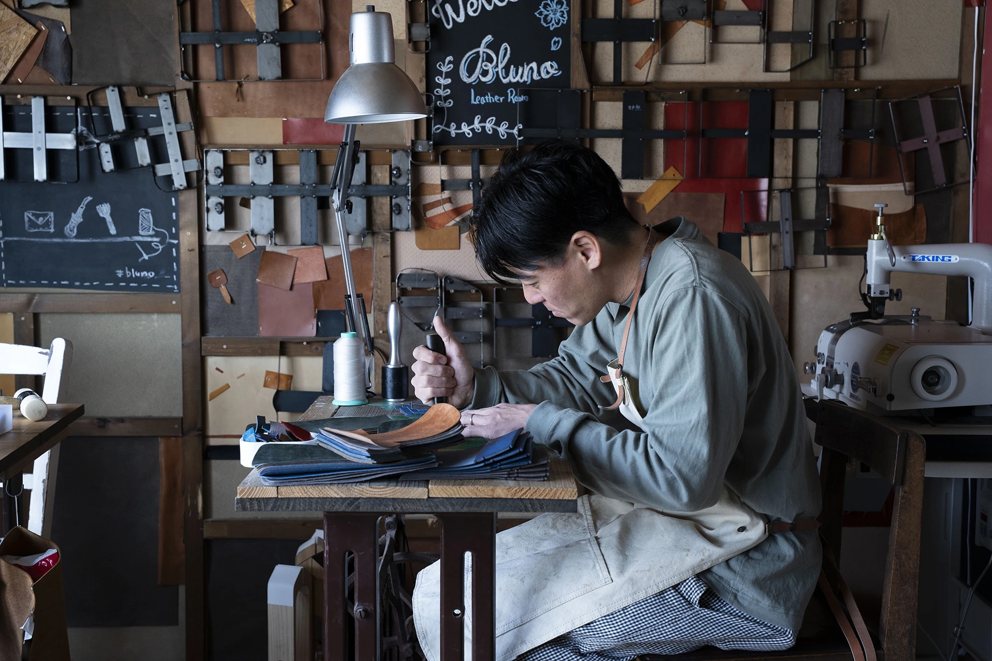 「Bluno」という屋号で活動している革職人・宇野裕貴さんだ。