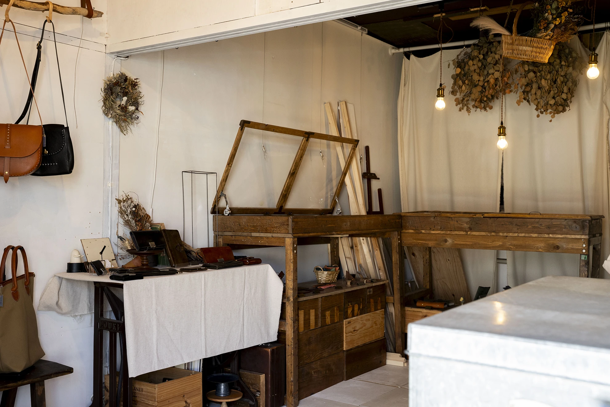 アトリエの一角で、革小物づくりのワークショップも始めた。